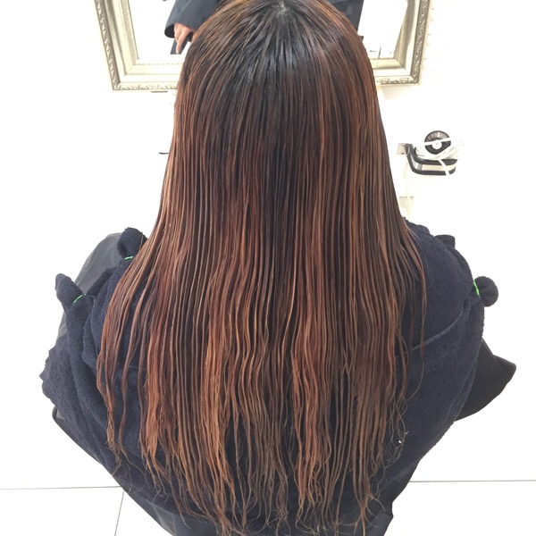 ここにアッシュグレーをナチュラルグラデーションで染めます。