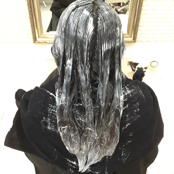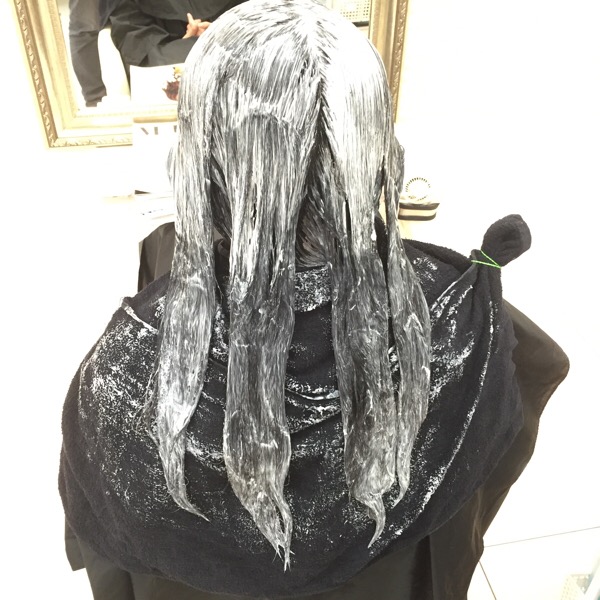 ここに2回目のアッシュグレーをナチュラルグラデーションで染めていきます