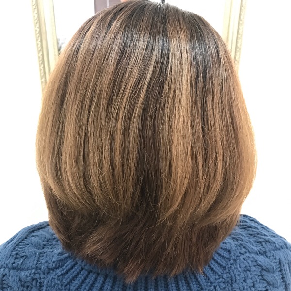 モノトーンアッシュにバイオレットで黄ばみを取ります。