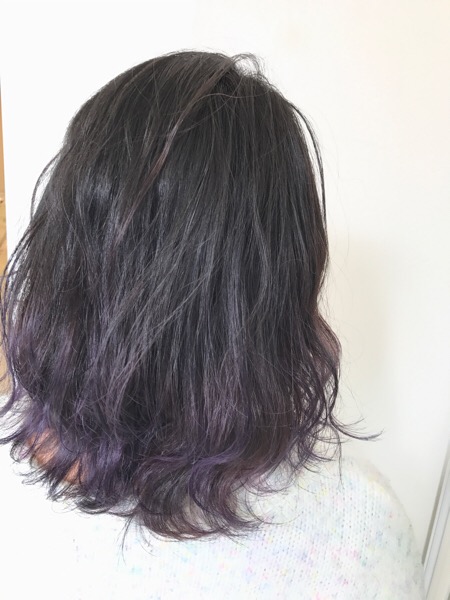毛先はさりげないディープパープルを。