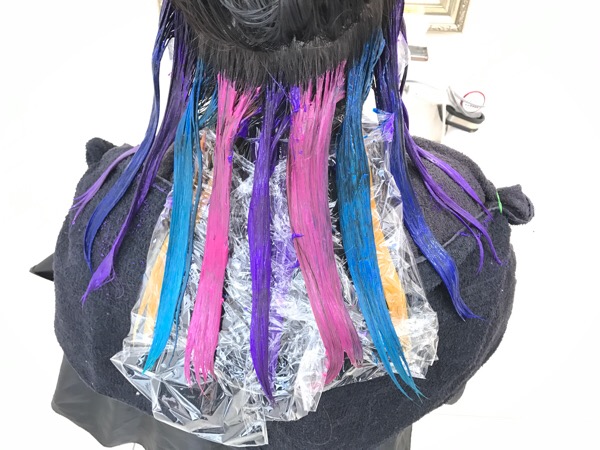 まずはインナーカラーにブリーチをしながら
