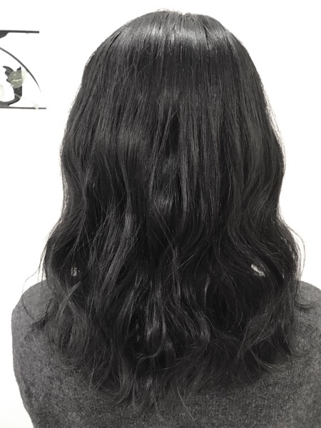 ぱっと見は真っ黒ですが赤味を感じない黒髪に。