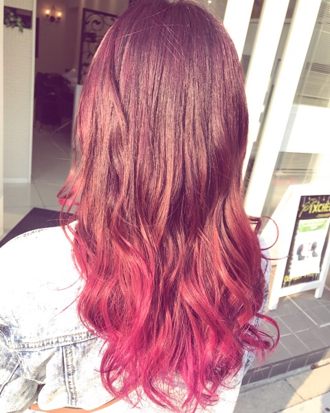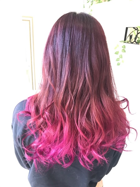 濃厚ピンクパープルからのカラーバターを使った鮮やかピンクグラデーションカラー