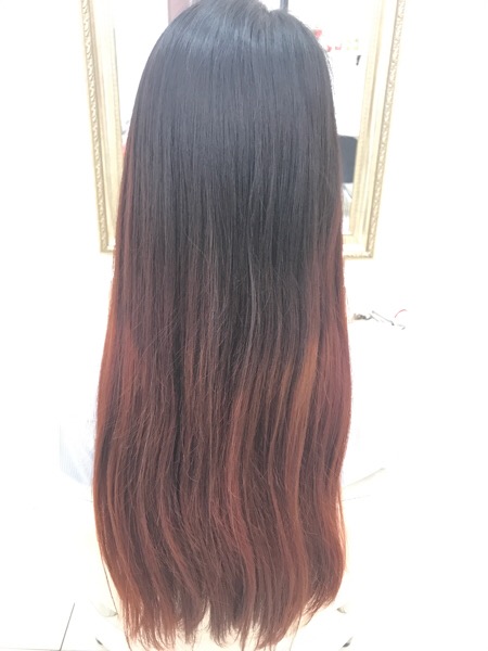 さらにレッドの鮮やかさをあげてまたまたグラデーションで染めます!!