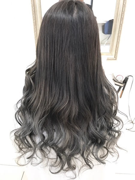 バイオレットアッシュのグラデーションカラーで毛先を白っぽく