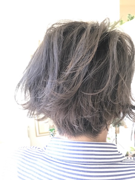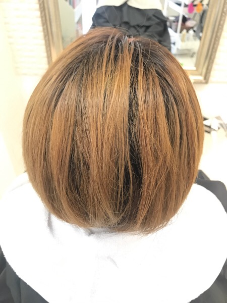 赤味と黄ばみを抑えるミルクティーグレージュをのせました。