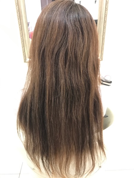 根元の白髪を染めながら毛先はアールブリーチでグラデーションにします。