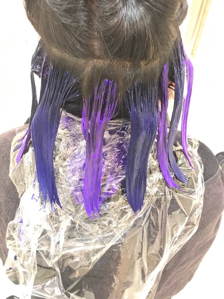 インナーをブリーチしながら毛先も。