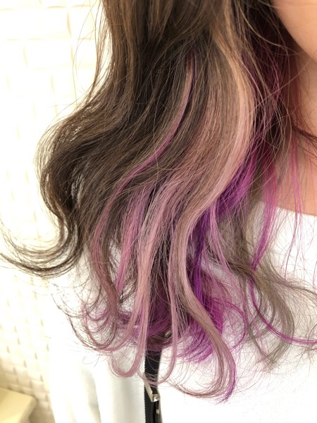 白とピンクパープルのインナーカラー
