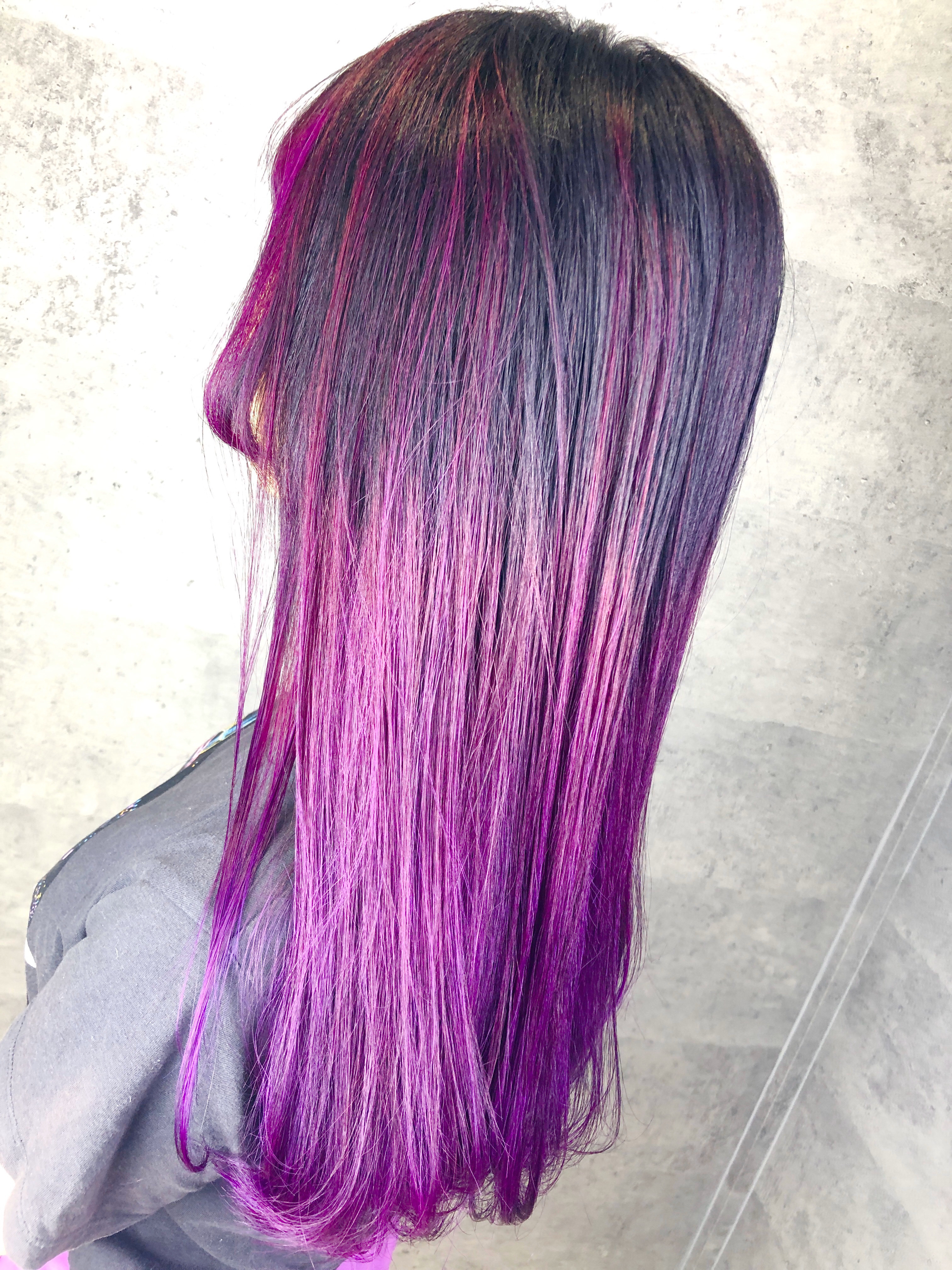 全体にピンクラベンダーを濃厚にしっかりと染めました。