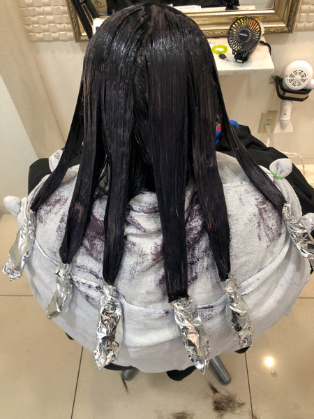 ベースをアッシュグレーで染めながら